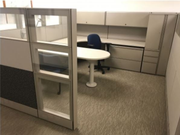 The setup of this Herman Miller Ethospace workstation is huge! Perfect for employees with a lot on their plates. Between the ample storage and work surface area and the high walls for privacy, it practically feels like a private office.