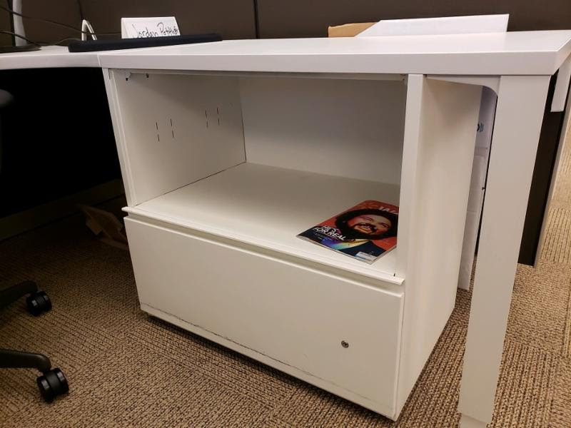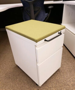 These Herman Miller Canvas Dock Workstations feature a 46″ height, one 30″ wide white laminate bookcase/file combo, one mobile box/file pedestal with cushion top, and a 36″ dry erase tile board. The sizes are 7′ x 6′, but can be configured to you needs. Canvas Dock is the foundation for desks, storage, surfaces, and screens. As workplace needs evolve for organizations—influxes of employees, changing priorities — Canvas Dock keeps up by allowing additions and removals with ease.
