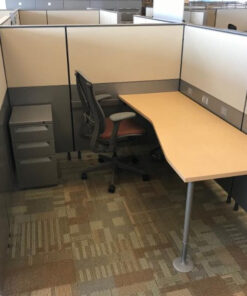 These Herman Miller Canvas Monolithic workstations feature honey finish surfaces, a two drawer full deluxe lateral file, overhead with sliding doors, overhead shelf, and a size of 8′ x 6′ at 56″ height. The Herman Miller Canvas workstations is an elegant space divider and power and data distributor. A variety of wall dividers keep things open or give privacy. Multiple material options allow organizations to reveal their character—all while harmonizing with the rest of the Canvas Office Landscape.