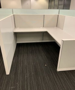 These Allsteel workstations are perfect in any office atmosphere. The glass paneling allows for privacy and communication between employees.