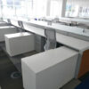 Allsteel 6x6x56 Workstation. Includes glass panels for collaborative working. Wood finish with tan paneling goes great in any colored office.
