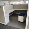 These Teknion benching systems add the perfect touch of modern to an office space. Frosted glass dividers for privacy along with collaboration that benching systems provide.