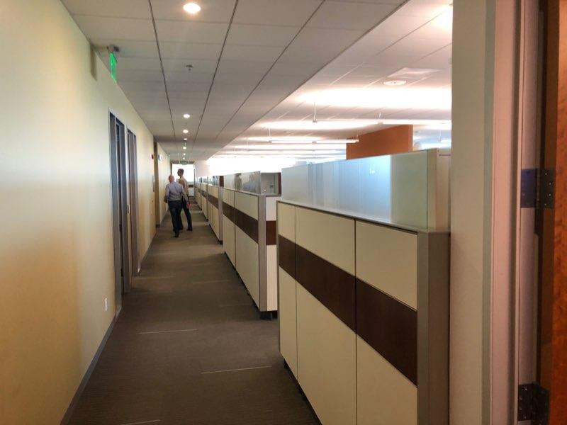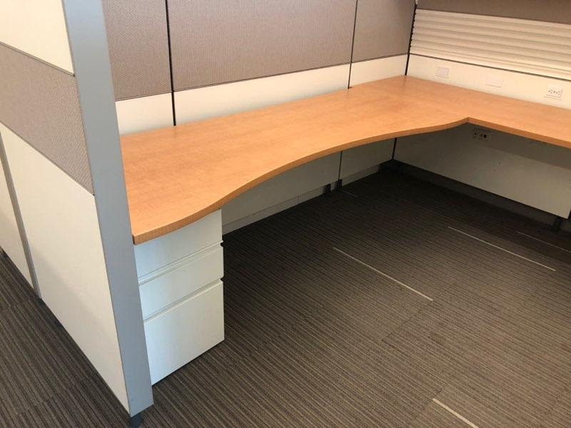 All Panels are 57″h with “Up Mounted” Veneer Over Heads Plus Filing Storage w/ Cushions to create relaxed seating for occupant & Tower & Pedestal.