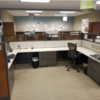 Haworth 6×8 compose workstation with glass panel on the top. Standard dimension are 48″H and includes a Box/Box/File Pedestal and 30″W 2-Drawer Lateral File Glass on Wing Panels. Dimensions can be adjusted to desired fit.