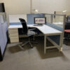 Herman Miller Ethospace with limitless options of clear glass, marker boards, frosted glass, paper management, metal, or fabric individual tiles. Your choice of fabric, finish, and laminate along with multiple choices of below the desk filing and overhead storage. Many heights and widths.