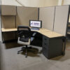 6×6 cubicle which includes a primary and secondary work surface along with filing for storage. Can be configured in several different ways.