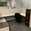 Herman Miller canvas workstation in dimensions of 6×6. Dimensions can be altered to fit the desired size. Includes both under and above the desk storage and filing systems.