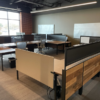 27.5 x 60 Knoll Antenna Benching stations with glass down the center. Include power and cloth privacy panel down the center.
