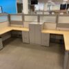 6×6 All Steel workstations with return and storage. Promotes collaborative work environment with open plan. Call or visit the showroom for more information!