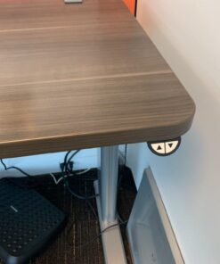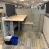 60″x42″x43″h – 46″x23″ sit to stand Steelcase Answer workstation with wood/laminate surface and silver base. Includes dual monitor arm, double-sided storage, surface mount glass panel, mobile BF, and power/data raceway panels down spine. Customizable to customer preferences, call today for more information!