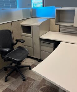 product catalogHerman Miller Canvas 6×6 Workstations. Includes over and under the desk storage, spacial dividers with frosted glass, and filing cabinet with FF storage space and more. Call today for more information!