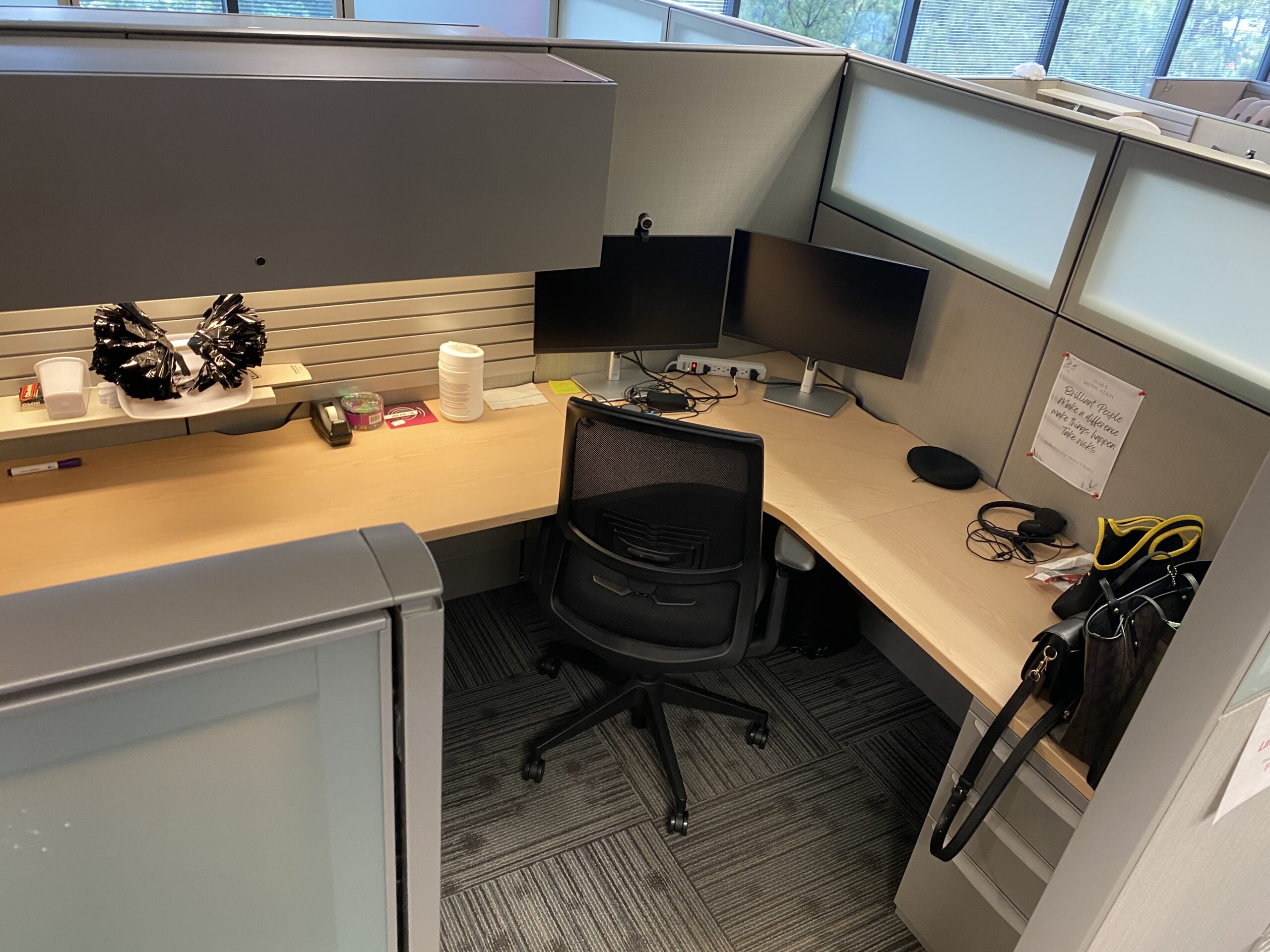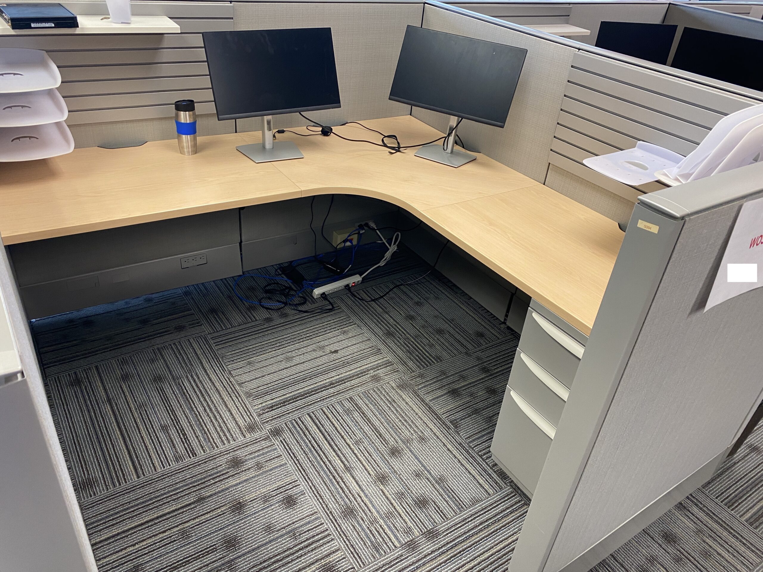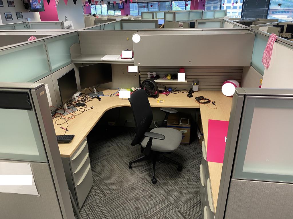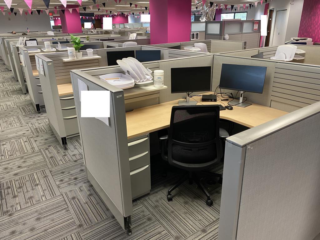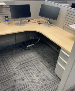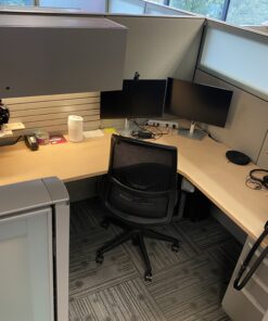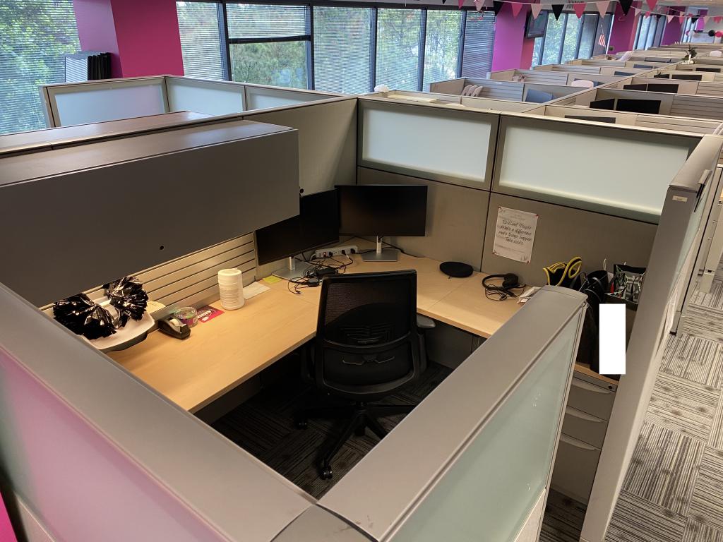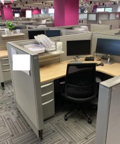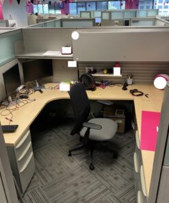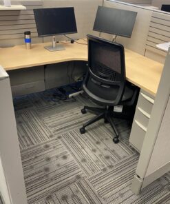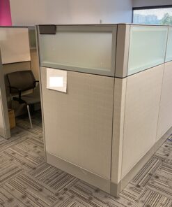 Haworth Premise Cubicles in dimensions of 6×6, 8×6 and 8×8. All stations include under and above the desk filing storage, frosted glass paneling, and slatrail wall organizer. Customizable to customer preferences, call today for more information!