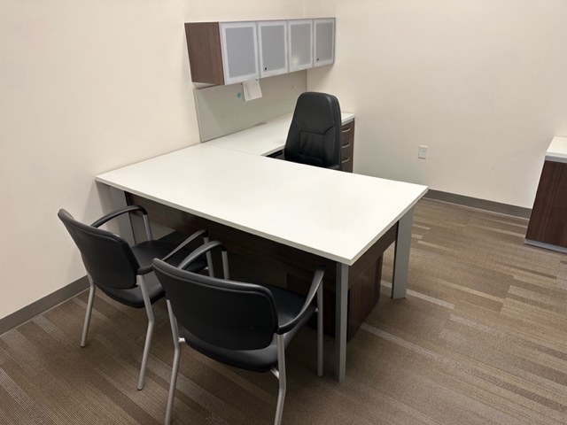 Haworth Executive Style Desks now available! Desk come equipped with wall-mounted overheads, BBF and FF Pedestal. Call today or visit our showroom for more details.
