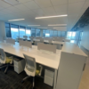 This Haworth Contemporary Modern Table Desk is perfect for you! Included is a credenza with vertical storage units, double enclosed overheads, a task light, and a wall mounted yack board unit. Call or stop by to check this out!