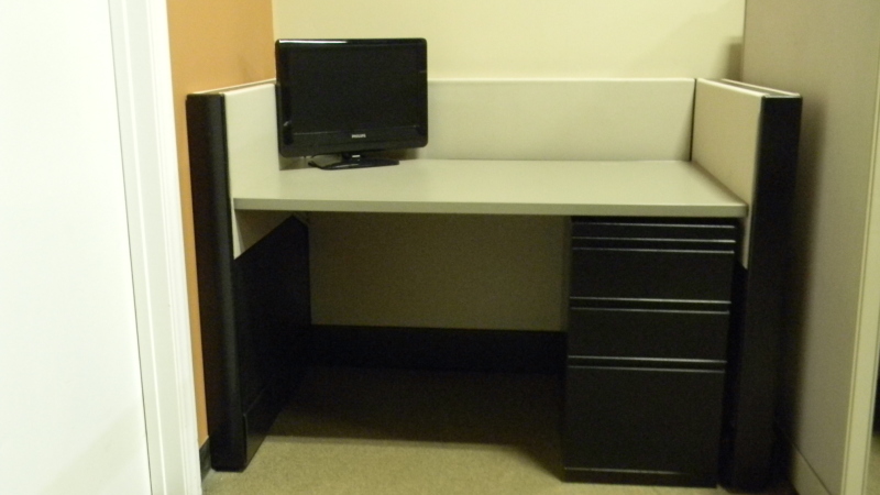 The Herman Miller Telemarketing Station is a refurbished 4 foot call center stations look great. They come with a B/B/F pedestal for storage. The panels are in 2 different shades. We have a warehouse full of used cubicles to fill your used office cubicle needs.