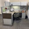 This Steelcase Sit to Stand desk is exactly what you are looking for! Adjust it to whatever your preference may be! Blue accents add a unique pop of color to really liven up a space!