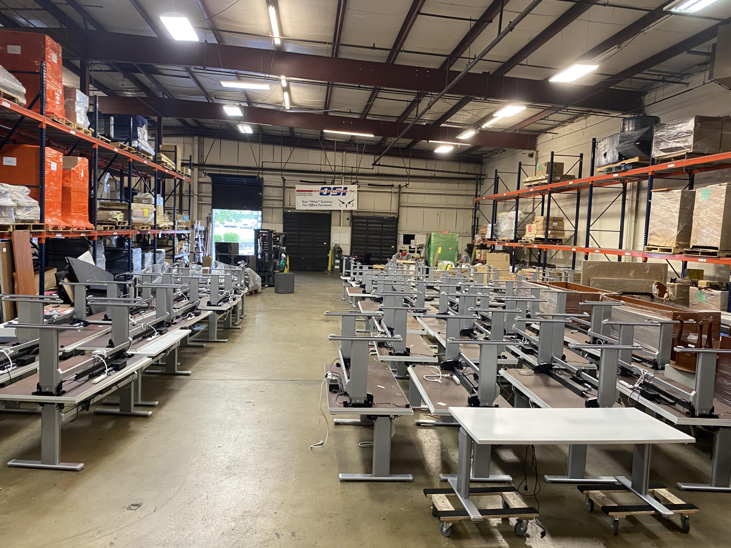 Just in! 163 electrical Steelcase sit to stands. They are 3 stage, dual motor, full height sit to stands in a HPL white pattern. Dimensions are 64″w x 29″d with a metallic silver base. As always, these are first come first serve so make sure to buy yours today!
