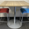 30″ Square Café-Height Turnstone Table with Storm Gray Laminate Top and Platinum Edgebanding and Disc.